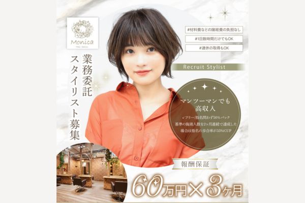 スタイリスト【業界屈指の歩合率】3ヶ月の報酬保証など、好待遇サロンでスタイリスト募集 おすすめ